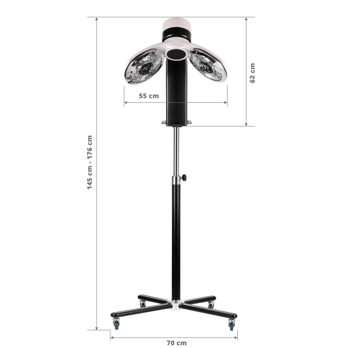 Deze droogkap is van het type Infrazon: een combinatie van ingebouwde ventilatoren en heaters zorgt ervoor dat haarbehandelingen zoals het zetten van een permanent, verven of het aanbrengen van een masker voor het haar sneller kunnen worden voltooid. Het haar absorbeert de behandeling sneller en beter. De hoogte van deze droogkap is instelbaar tussen 145 cm en 176 cm. De afmetingen van de kap zijn 55 cm. Deze droogkap beschikt over 2 ingebouwde ventilatoren en 2 ingebouwde heaters. De Gabbiano Droogkap Infrazon met Statief 918 Parelwit beschikt over 1100 Watt. De droogkap beschikt over een instelbare timer van 0 - 60 minuten om de behandeling automatisch tijdig te stoppen. De Gabbiano Droogkap Infrazon met Statief 918 Parelwit is gemakkelijk in elkaar te zetten en komt met 1 jaar garantie.